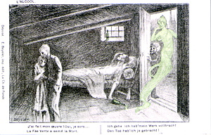 ![]() J'ai fait mon oeuvre! Oui, je sors... La Fée Verte a semé la Mort. Die Grüne Fee: Ich gehe, ich hab' mein Werk vollbracht. Den Tod hab ich ja gebracht! |